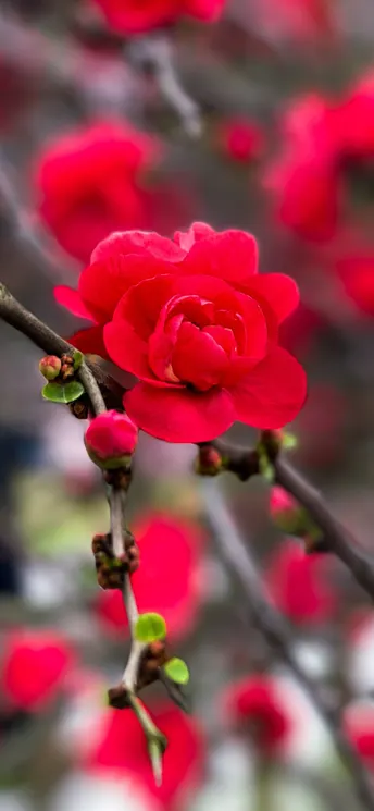 春日的清晨,一场春花盛宴如期而至。漫步于繁华的花园中,微风轻轻吹拂着新生的嫩叶,让枝头的花朵更显妖娆多姿。而在这一切春意盎然的景致中,最为夺目的便是那一片娇艳的海棠花,仿佛春姑娘迎面走来的微笑,以一袭素颜与曼妙的身姿迎接新生的春天。 海棠花开,如此多姿多彩。繁密的花朵密密麻麻地挂满枝头,似朝霞般的红色如诗如画地装点着初春的时光。她们轻盈地在微风中摇曳着曼妙的身姿,仿佛在诉说着春天的故事。那花瓣上晶莹剔透的露珠,在阳光的照射下熠熠生辉,如同镶嵌在花瓣上的珍珠,为海棠增添了几分高雅与尊贵。 海棠花的盛开,不仅为春天增添了绚丽的色彩,更带来了生机勃勃的活力。它们在寒冬过后,以独特的姿态为大地披上了一层缤纷的华服。那一片片的花海中,花香四溢,沁人心脾。它们如同春的使者,唤醒了沉睡的大地,带来了生命的奇迹