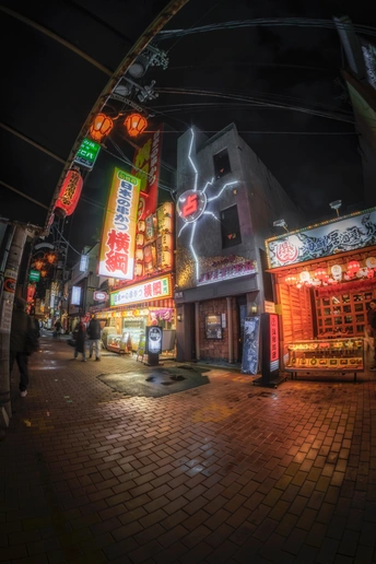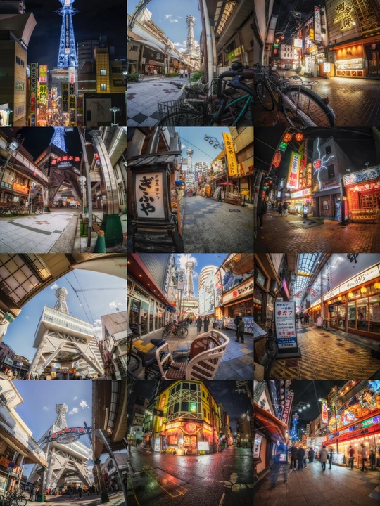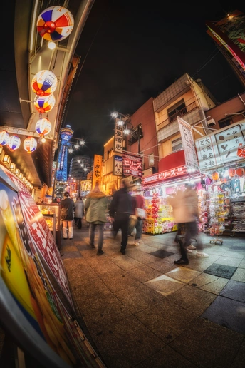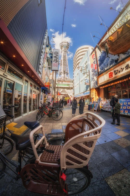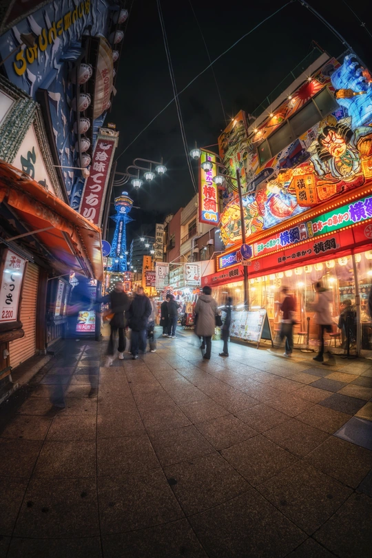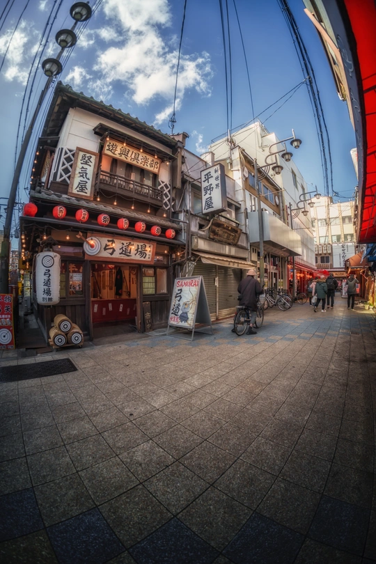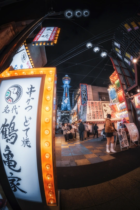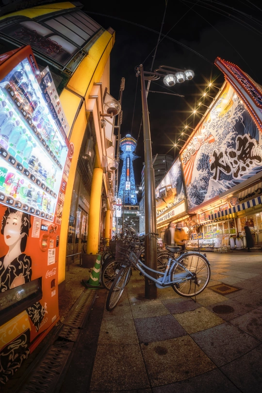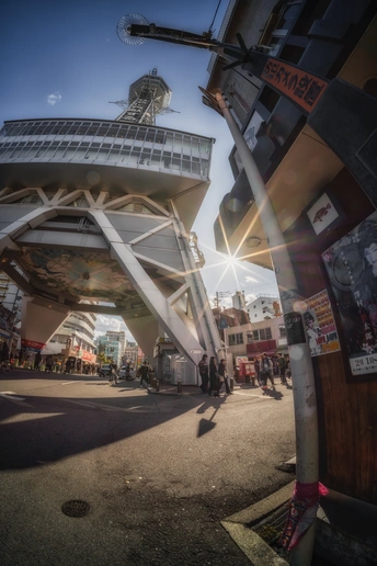从白天到黑夜,走在大阪街头,处处都散发着浓浓的生活气息。从各式各样的餐厅、人头涌动的街巷,到独特的通天塔地标,这番景色也只有日本这样的高密度规划的城市内才能看到,独特温暖而梦幻 我好像发现了鱼眼镜头真正灵魂的玩法,夸张的畸变配上紧凑的街头,视觉效果拉满了