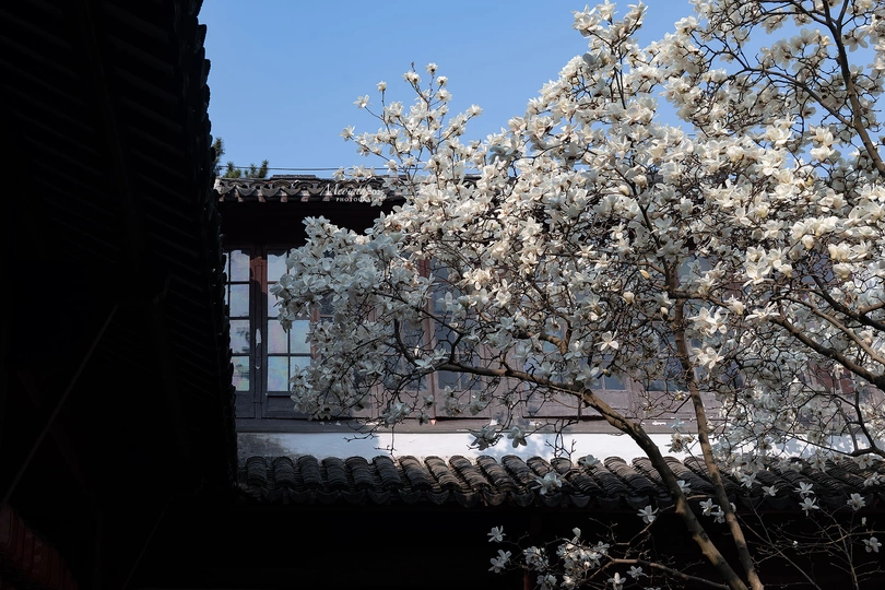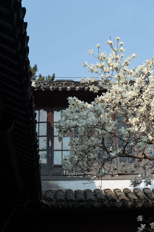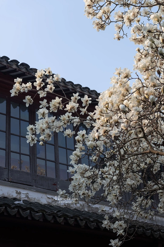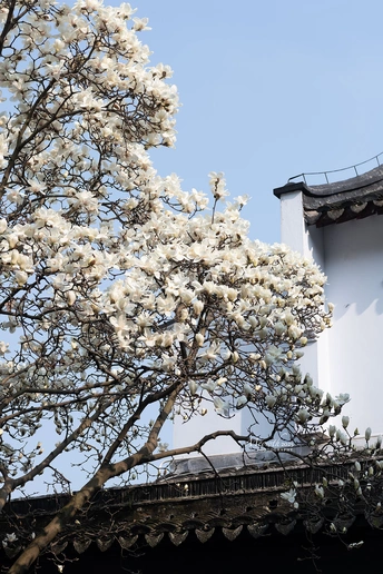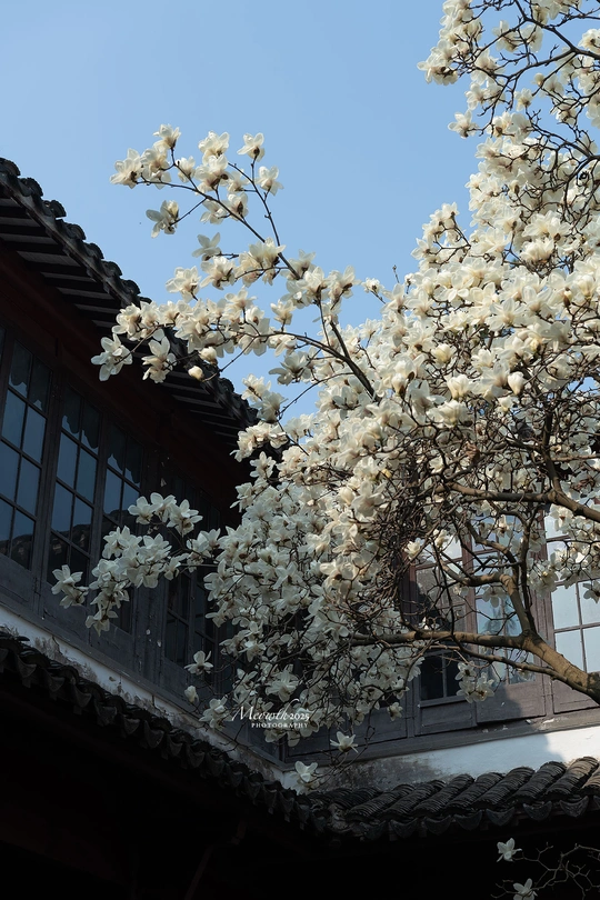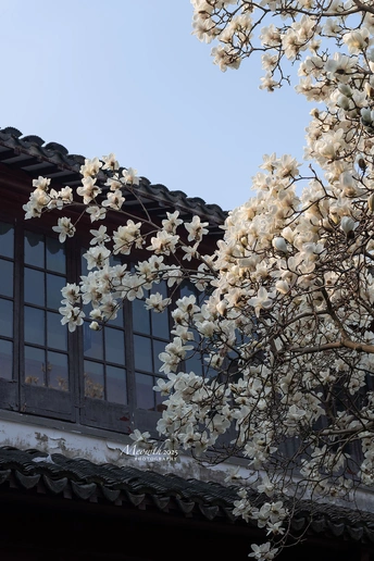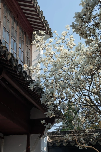 🌸和翁同龢纪念馆的白玉兰一样,也是偶然发现的玉兰,其实在1月份的时候就关注到这棵玉兰花了。 🌿等到3月份玉兰花开时,我赶早去看了下兴福寺的白玉兰,果不其然盛放了。 🌿比起狮子林、网师园的人从众,这棵玉兰花鲜少人知,拍摄体验绝佳