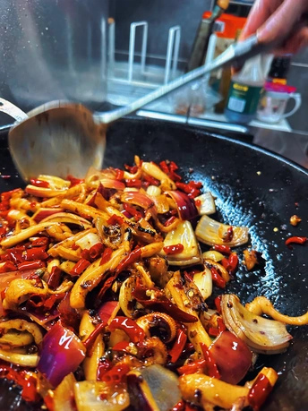 一桌川味海鲜局,配得上今良造的“江湖气”! 朋友来家聚餐,野生虾爆炒、带鱼干煸、干锅鱿鱼…川式热辣撞上东海鲜甜,再开两斤宜宾散酒铺子的天花板-今良造坛坛酒——窖香醇厚,虽是低度,但却劲道十足,朋友直呼“这酒配菜,灵魂都跟着沸腾!” ?宜宾纳税过亿的酒企就两家,一家今良造,另一家…懂的都懂! 另外感谢好友老谭提供新鲜食材,感谢好友新东方厨艺学院高材生-凌凌大厨辛勤奉献四个小时[抱拳][抱拳][呲牙][呲牙]