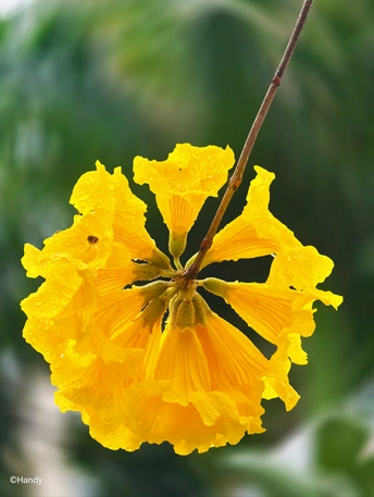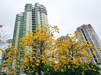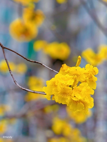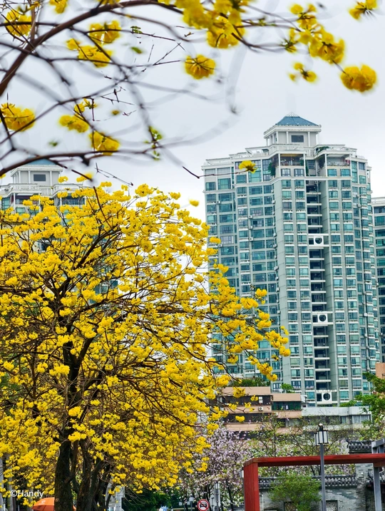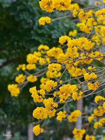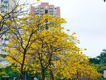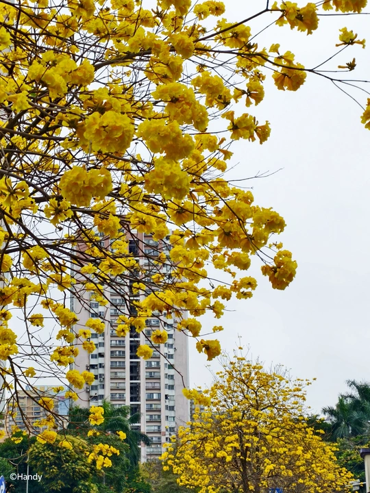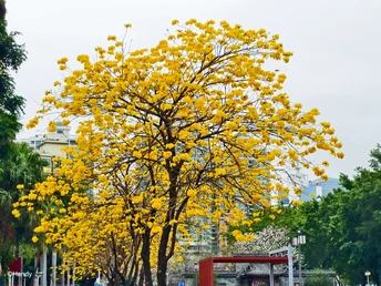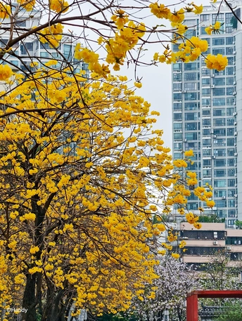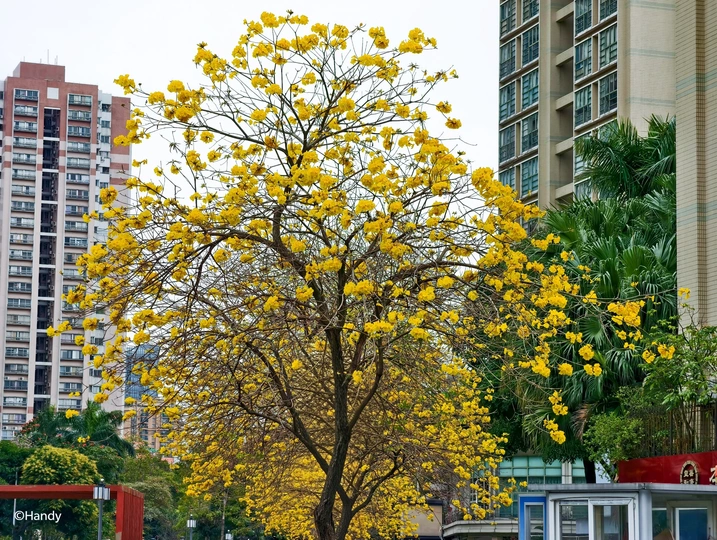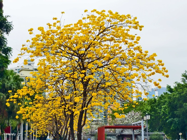黄花风铃木是优良的行道树,其花色金黄明艳,花期时黄花满树,适合在公园、绿地等路边,水岸边进行栽培观赏,也可在庭院、校园、住宅区等地方种植。阳春三月时黄花风铃木惊艳绽放,大片的明黄迎着春风盛放,美不胜收!花朵像一串串金黄色的风铃悠然摇曳,散发出淡雅的香味。其一般在三月绽放,花期只有短短的十多天,但却能惊艳整个春天。