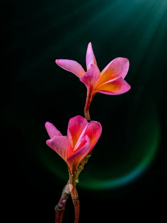 在光影的褶皱里,两簇柔瓣共守一根脉络。是风动时的相互依偎,是时光里的静默承托,你以茎脉为臂,我用花影作依,于黑暗背景下织就一曲共生的诗。不必言语,便懂这世间最动人的搀扶,是穿越四季仍以同频的姿态,把各自的绽放,活成彼此永恒的支撑。
