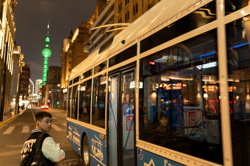 拍摄于上海外滩汉口路 这个路口有线电车刚好会路过,和路人可以组合成照片主体
