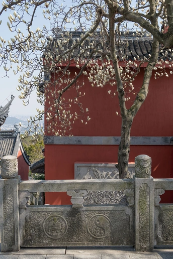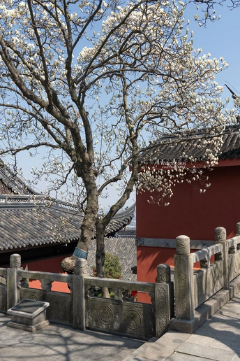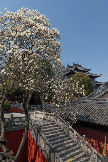 🎈听说这棵白玉兰是乾隆手植,距今已有240余年树龄 🎈苏州大市有两处红墙玉兰,一处在皇罗禅寺,另外一处就在这。 🎈穹窿山上真观 🎈有停车场 🎈北门和南门有接驳车去上真观,单次¥15