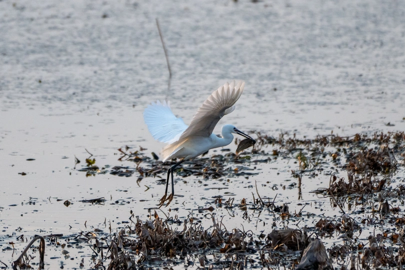 春分暮色 白鹭捕鱼