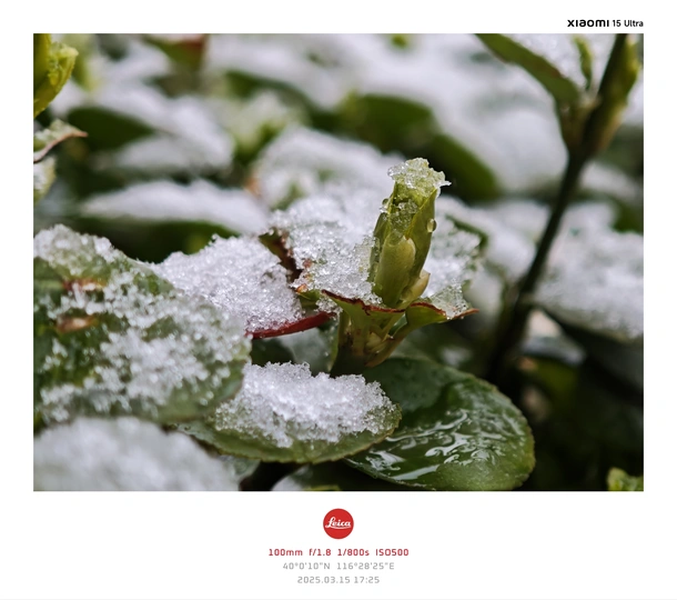 春天到来 万物复苏 可谁料到刚冒出绿芽的植物们迎来了春天的一场雪,使得嫩绿的芽和刚开的花蒙上了一层寒霜