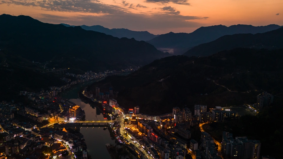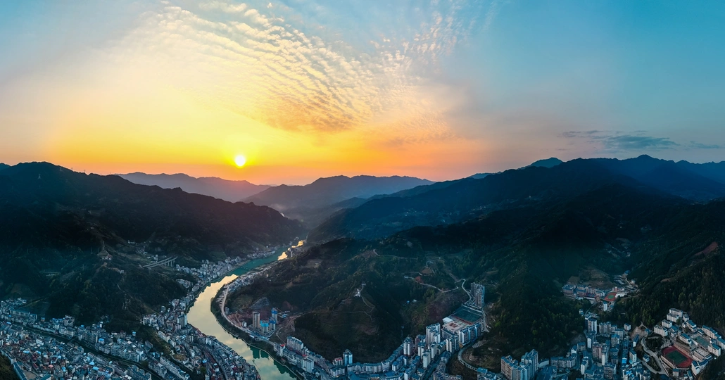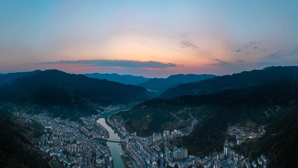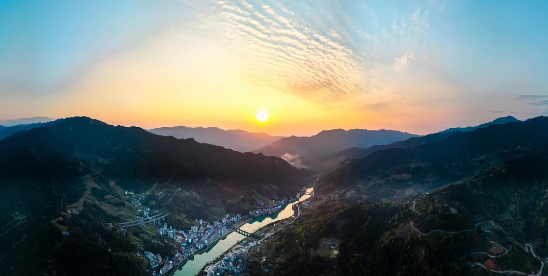 广西龙胜县,夕阳余晖下的桑江