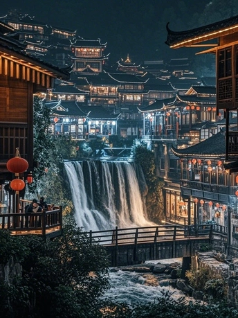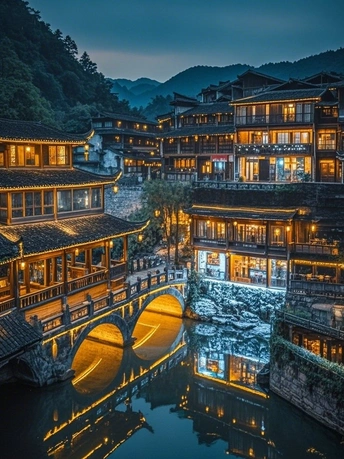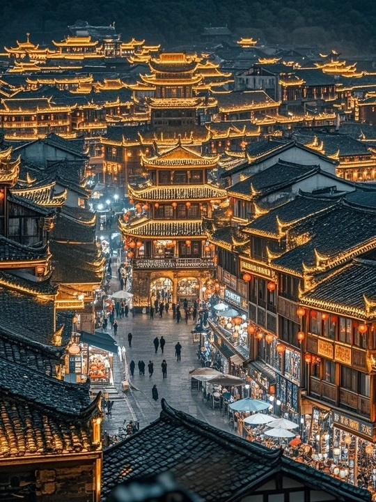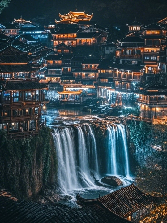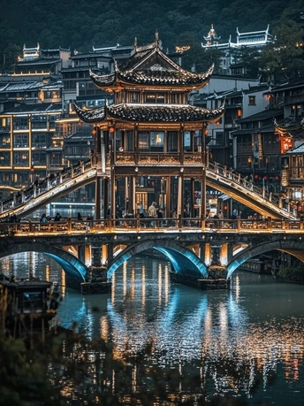 湘西景色,虽然是两个古城,但是夜色夜景都是一样的美