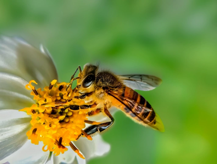 细足沾满星辰般的花粉,蜜蜂在野菊花上写下透明的乐谱。