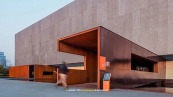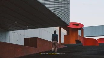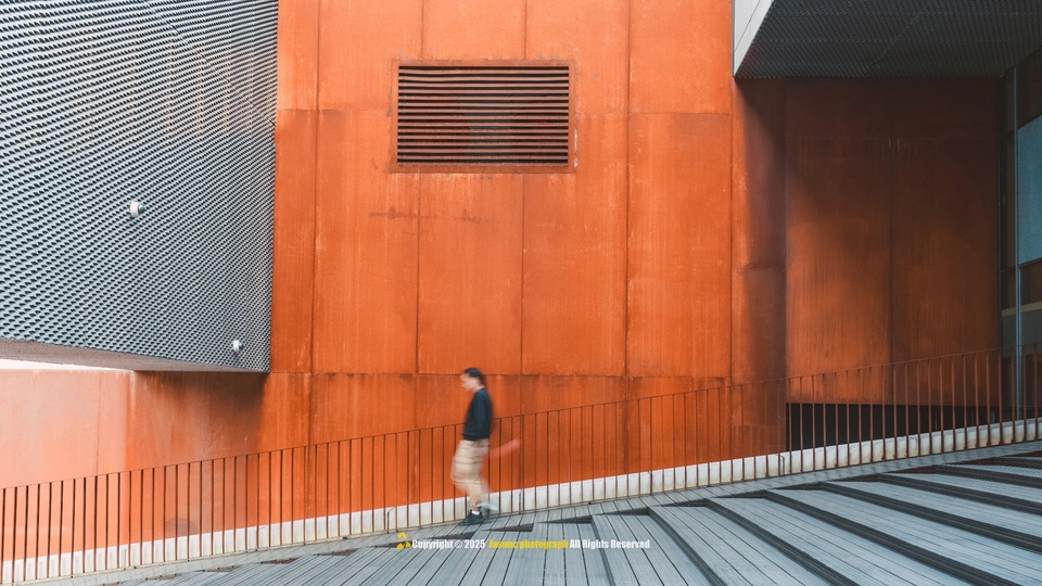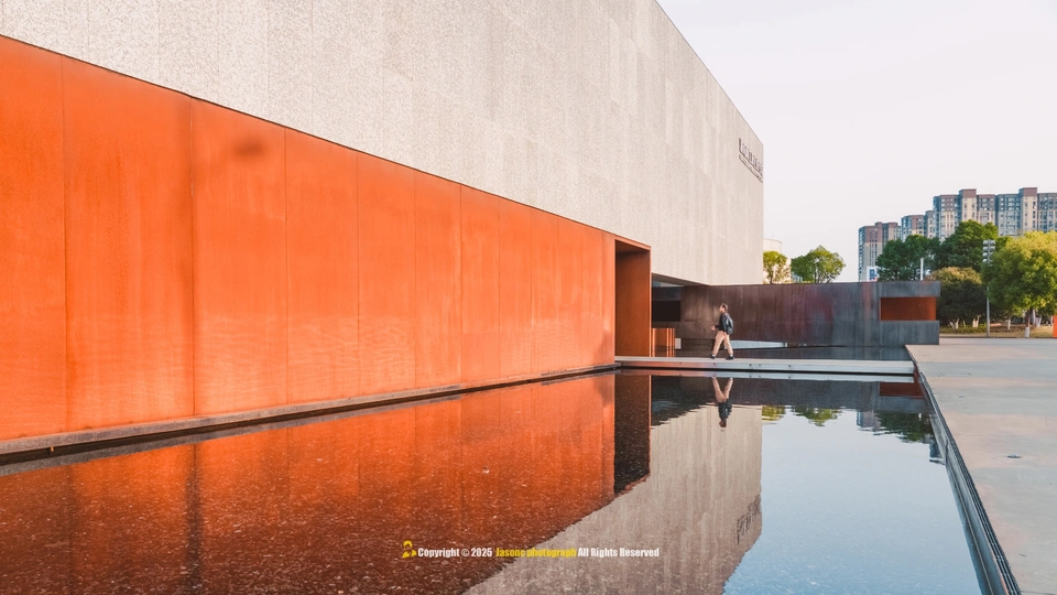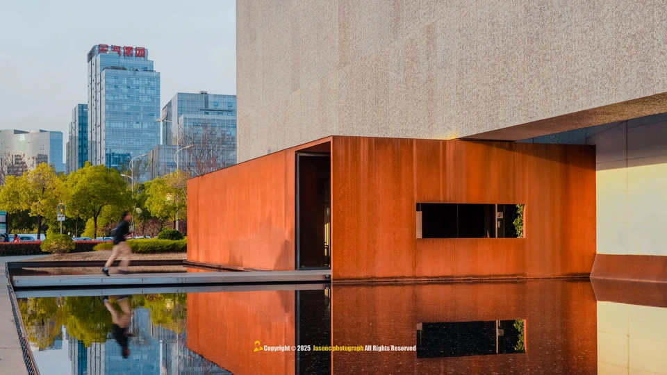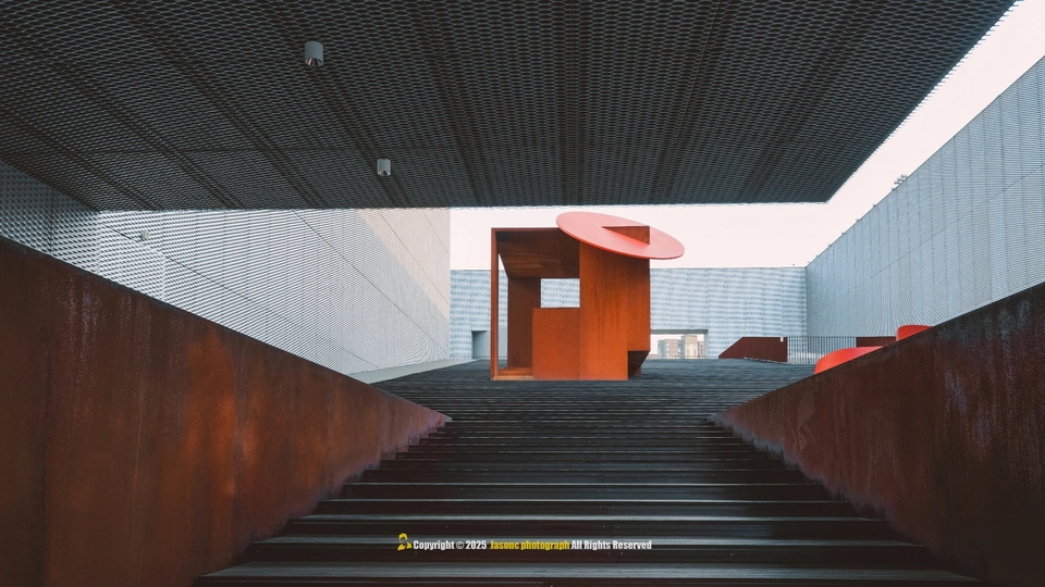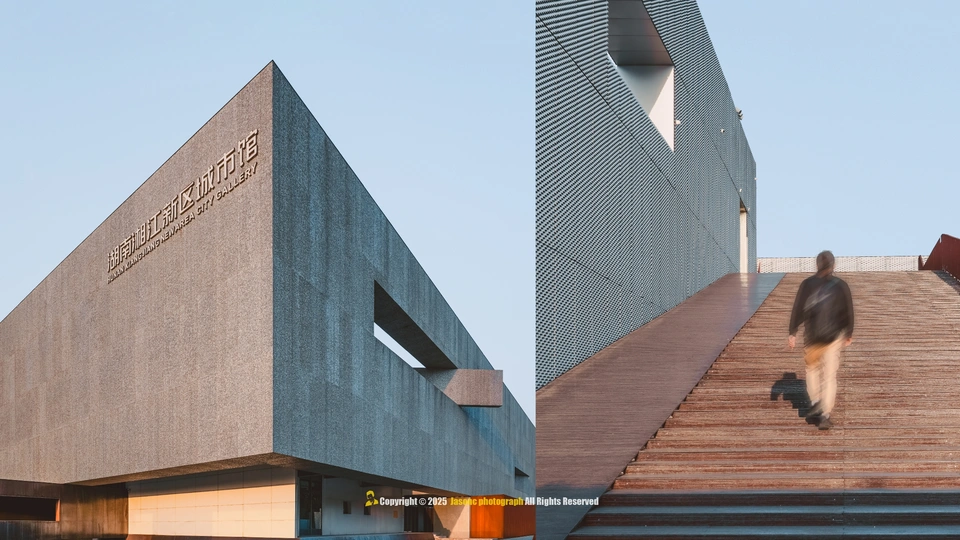 光影是这座建筑的呼吸, 泡沫铝板的肌理在暮色中低语, 仿佛湘江的波纹凝固成墙, 悬浮的“魔盒”轻触水面, 将几何的理性揉进湖湘的浪漫。 若建筑是凝固的音乐, 这里便是光与影的交响诗。 按下快门时, 我听见湘江的水浪声, 拍打着每一寸混凝土的缝隙。