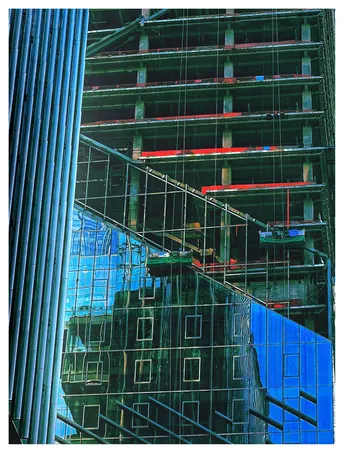“光影”对应玻璃建筑反射的光与影 ,“骨架”代表正在建设的建筑结构,二者构成城市独特的旋律。 在城市的舞台上,建筑是永不落幕的主角。眼前,新旧建筑的对话正在上演,玻璃幕墙映照着城市的光影,似在诉说繁华过往;背后未完工的钢筋骨架,如同坚毅的开拓者,承载着未来的憧憬。它们一同矗立,见证着城市的变迁与成长,每一道线条、每一块砖石,都在书写着属于这片土地的故事。