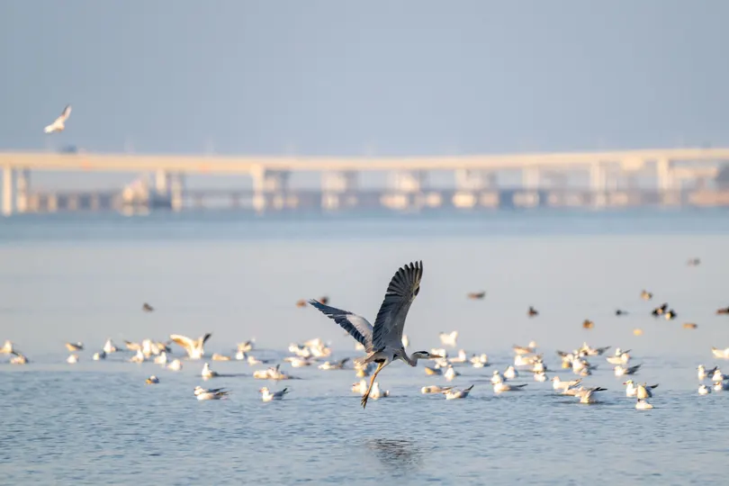 深圳湾的白鹭是这个区域一道非常美丽的生态风景线。深圳湾位于深圳和香港交界处,是一个重要的湿地保护区,每年吸引大量候鸟迁徙,其中白鹭就是最常见、最具代表性的鸟类之一。 白鹭体态优雅,雪白的羽毛在蓝天和水面映衬下显得特别灵动。尤其是在清晨或傍晚,成群的白鹭在滩涂、红树林和浅水区觅食、飞舞,非常适合拍摄和观赏。深圳湾公园、红树林自然保护区等地都是观赏白鹭的热门地点。