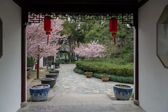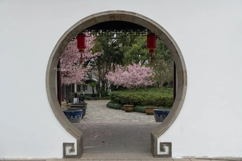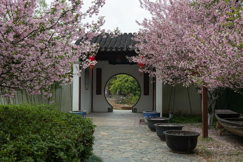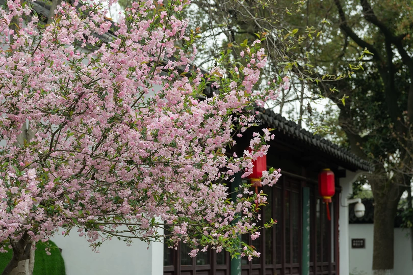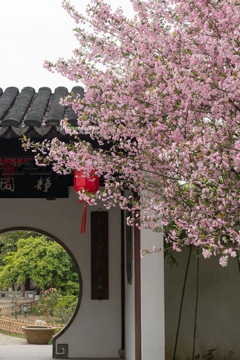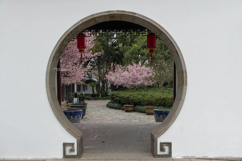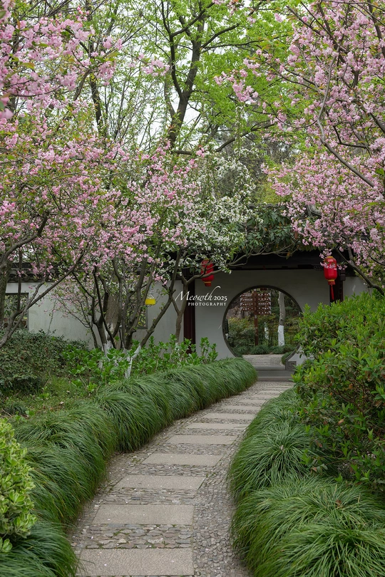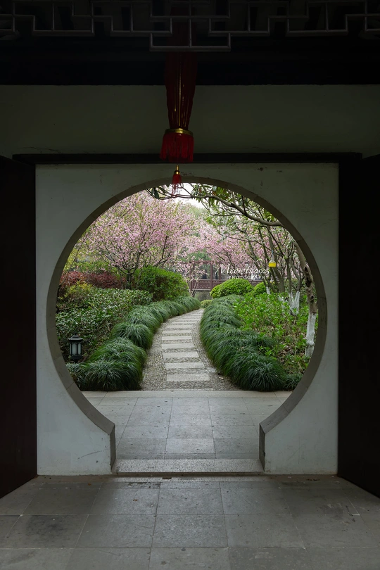 🌿月洞门外有一棵双乔玉兰,等到双乔玉兰花期过了,月洞门另一侧的垂丝海棠也要盛开了。 🎈常熟曾赵园 🎈园外马路有停车位