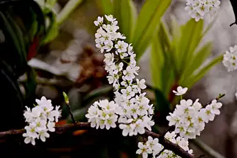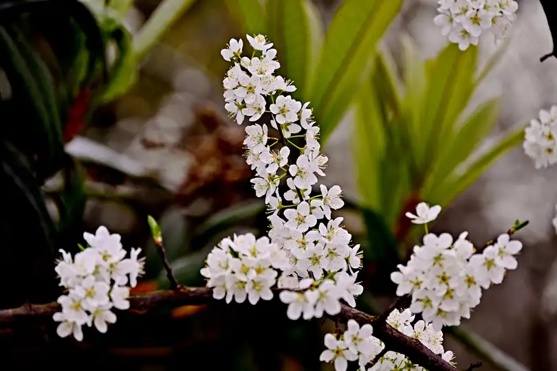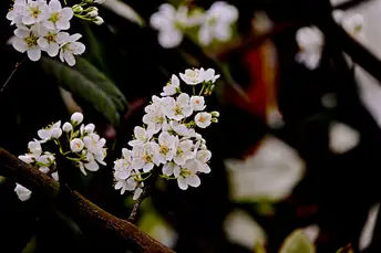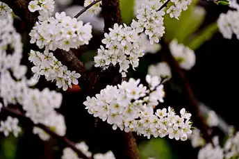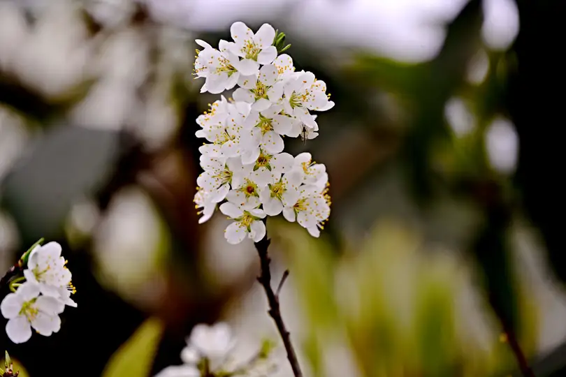 在一个农户的房屋外面满树繁花似锦白白的李子花开了,非常惹人耀眼。