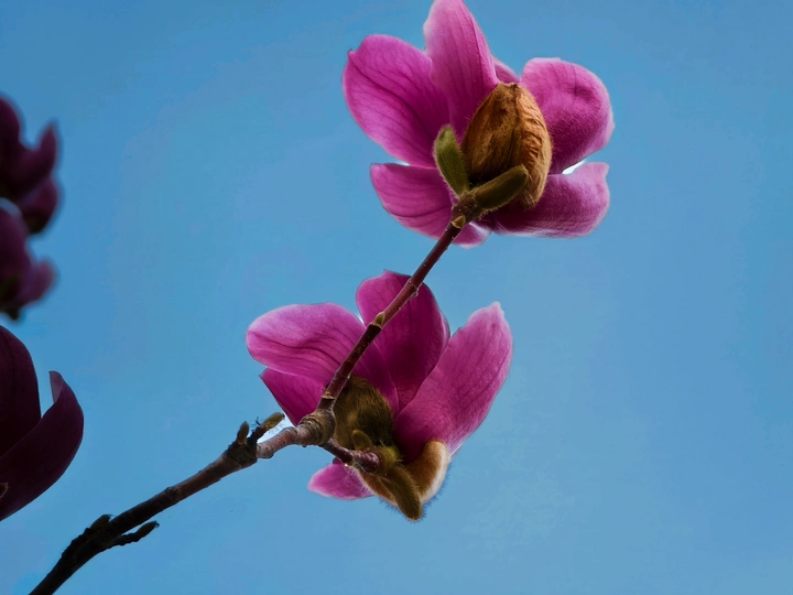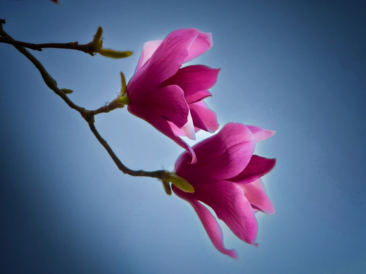 拍这些玉兰花的时候天都黑了 ,拍出来显得有点暗,通过后期提亮了花朵,把背景稍微压暗一些,这样看起来主体更突出一些。