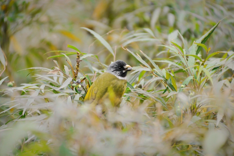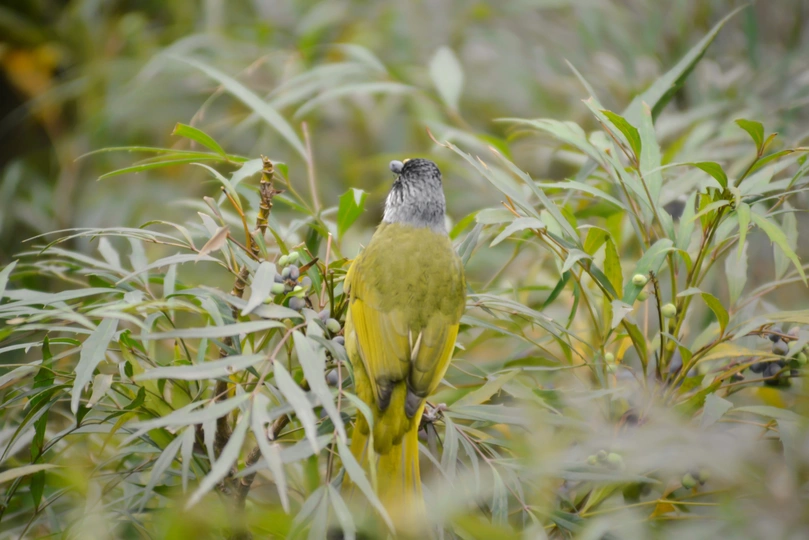 公园吃野果的领雀嘴鹎