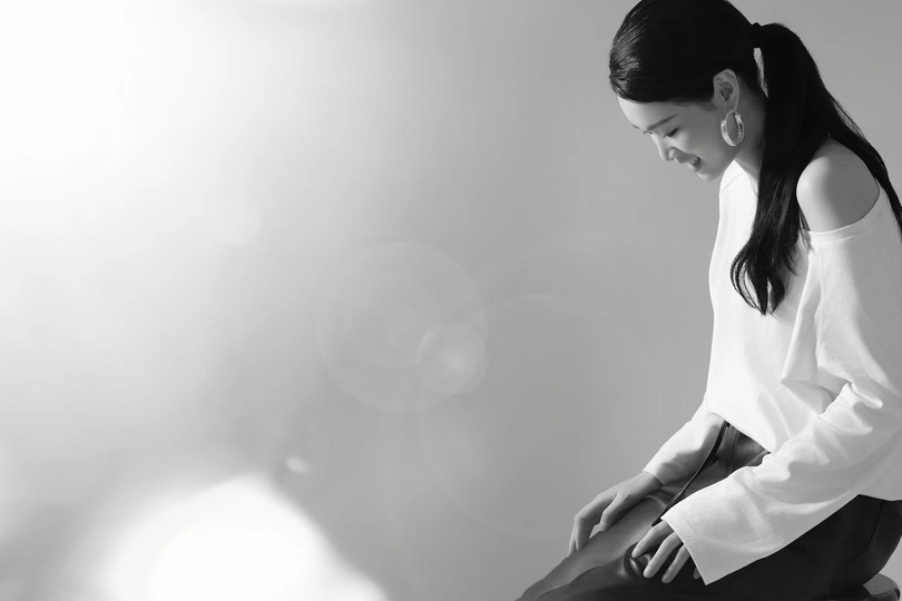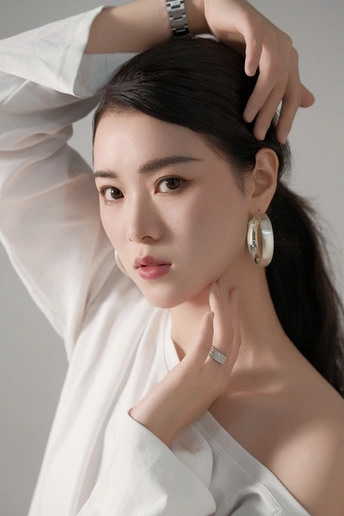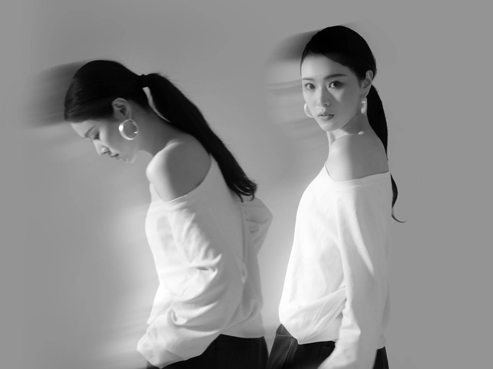 自带光彩的女孩,熠熠生辉 利用前景反光和慢门,让棚拍多样化。