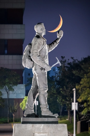 今天傍晚拍到了地大未来城勘探队员雕塑的悬日照片,与去年拍的悬月🌙形成了呼应(p2)。 在这一刻,仿佛看到了勘探队员们翻山越岭、日夜兼程,在野外为祖国寻找矿藏的景象⛏️ 📷尼康D850+腾龙150-600 g2 ⏰2025-03-24