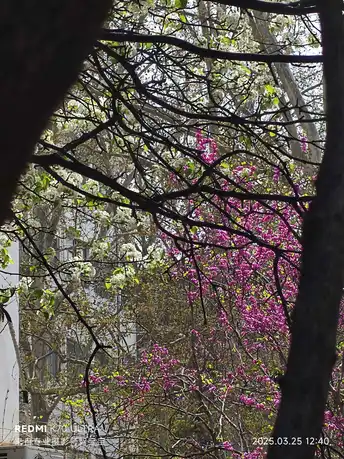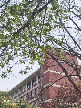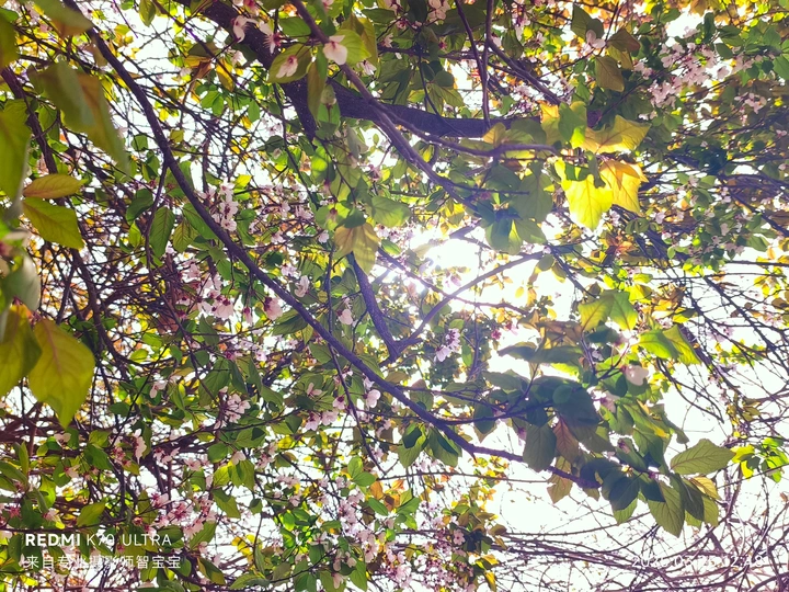 午饭后,走在校园的小路上,抬头一看,便看见这副美丽的镜像,便急忙打开相机记录下这美好的一刻