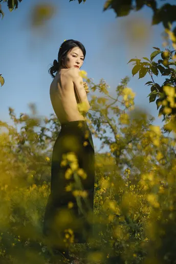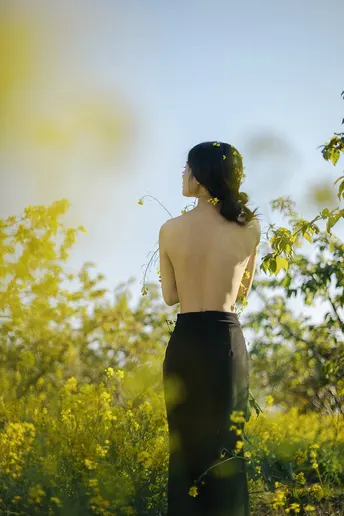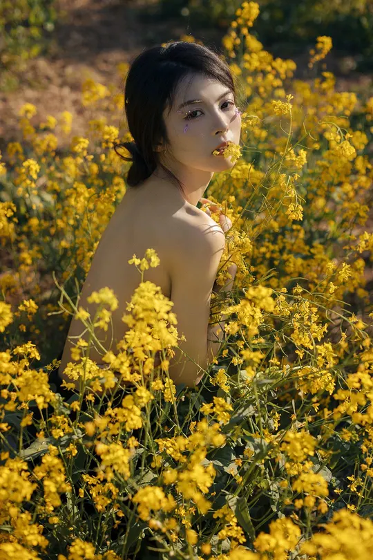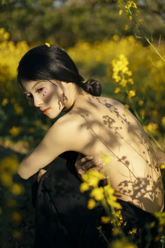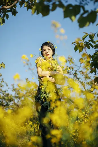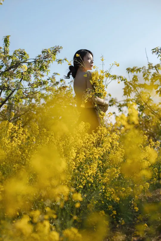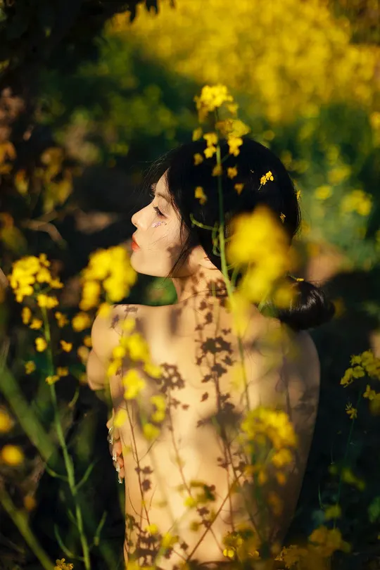 在金黄花海中,与自然相拥,光影洒落,心也沉醉在这无声的浪漫里 。