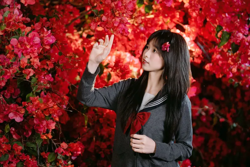 路灯拉长花影,三角梅偷藏夜的浪漫。 模特:@大吃一口🐯 ,@苦瓜阿姨 活动:@橙猫摄影会