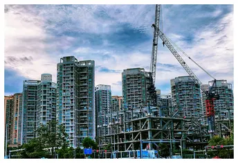 在城市的天际下,新旧建筑在此对话。林立的高楼已然是城市的骄傲,承载着无数人的梦想与生活。一旁,建筑工地上起重机伸展着巨臂,新建的框架正拔地而起,似在诉说着城市的蓬勃与不息。蓝天白云之下,绿树点缀其间,城市就在这不断的建设与发展中,迈向新的未来。