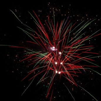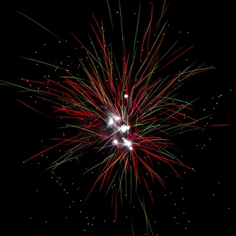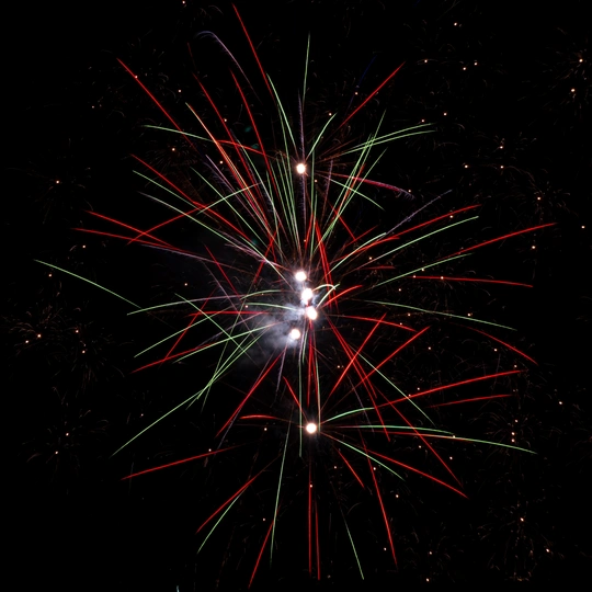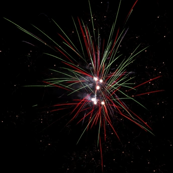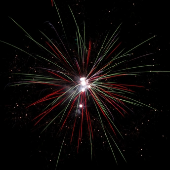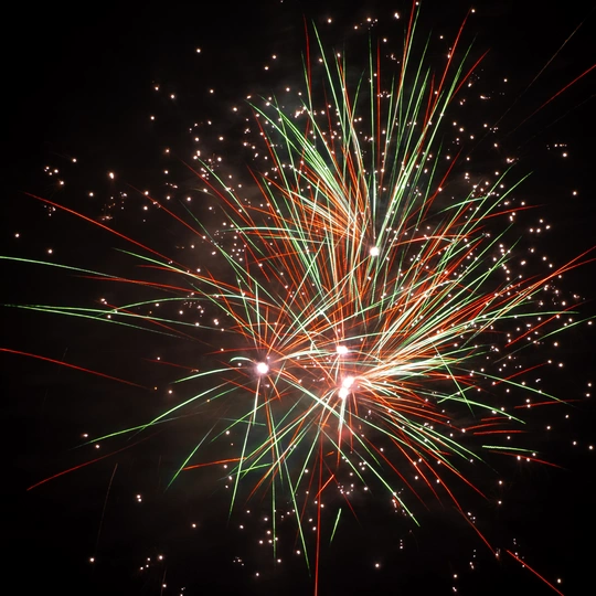 红与绿在夜幕中倾泻成诗,千万点朱砂与翡翠缀满天际,似星河倒卷、流霞倾覆。绽裂时如凤凰振翼抖落翎羽,坠落时若碎玉琼花漫洒人间,光痕蜿蜒处,黑夜被染成流动的绸缎。此刻轰鸣与寂静在云端和解,刹那芳华凝成琥珀,让仰望的眼眸盛满星辰的重量——原来最盛大的庆典,是光阴甘愿为烟火停留,教刹那的绚烂,在记忆里长生不老