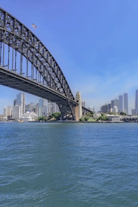 悉尼海港大桥,如一道钢铁铸就的长虹,横跨在波光粼粼的海面之上。坚实的桥身与精致的钢架结构,尽显工业美学的魅力。桥下,海水悠悠流淌,远处林立的高楼勾勒出城市的天际线,繁华与壮阔在此交织,诉说着悉尼这座城市的活力与辉煌。