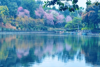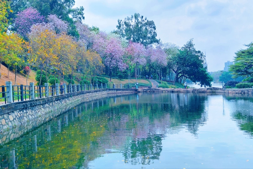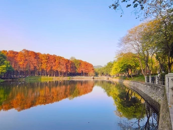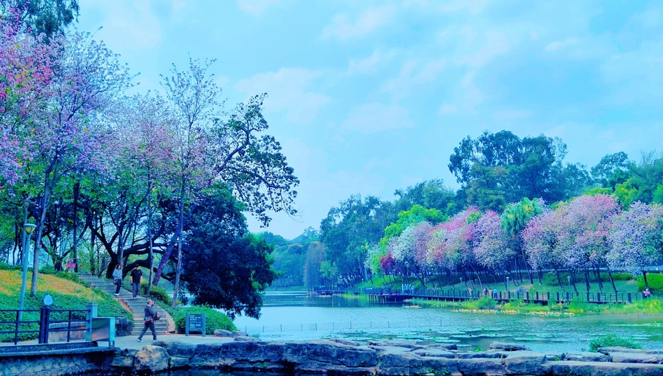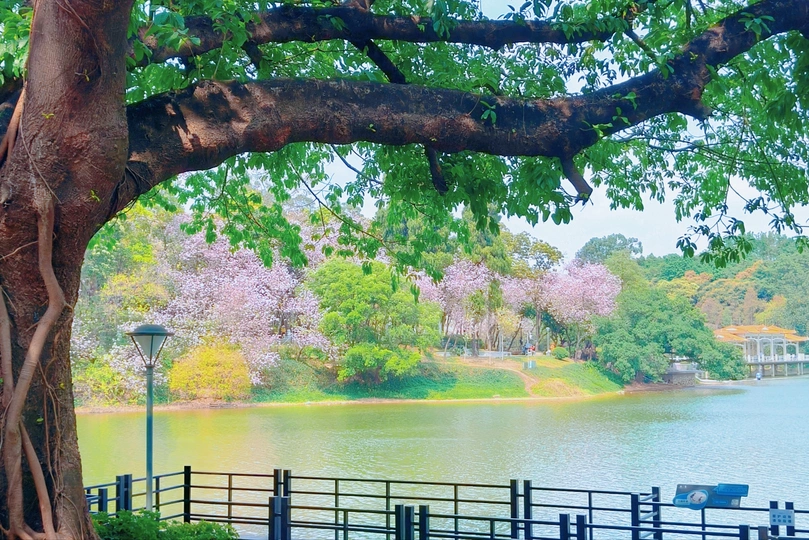 麓湖之美 恍若林芝 同样的角度,同样的机位,草木是无情的吗?为何换了妆容?淡然更新了生命! 不同的时间,不同的季节,观者是有情的吗?为何短短三旬,却勃勃生机得如此绚烂 我喜欢重临旧地临湖静观,翻开前三个月拍的旧照作一番对比,草木之荣常仅一秋,而人却是有幸的,可看四季流转季候轮换;但人又是喜新忘旧的,春天的葱茏之美,让人忘记秋天的浓郁凄然,然而,那也是好的,荡涤一下灵魂之后唱句: 前望~~我不爱独怀旧[憨笑]