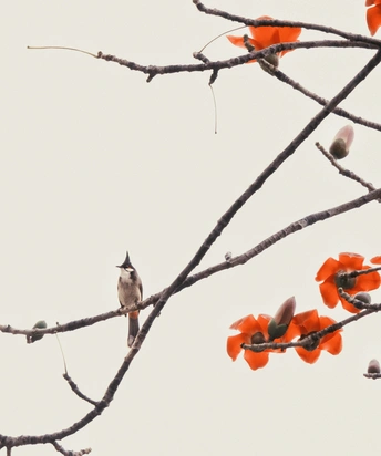 这是小区门口的一颗红棉树,今年木棉花开得特别旺,附近有不少鸟飞来喙食。我刚好看到一只鸟儿在树上,赶紧抓拍。
