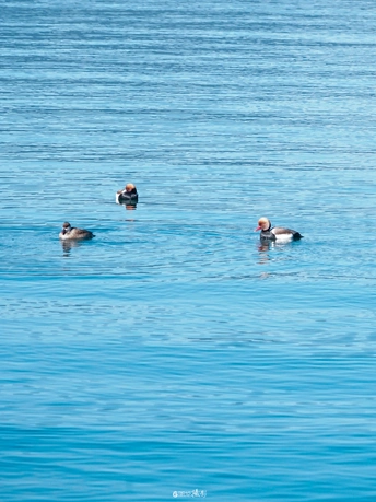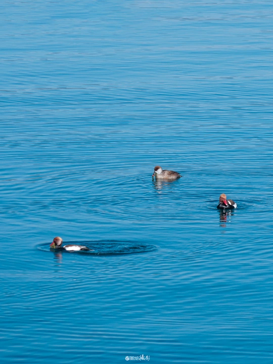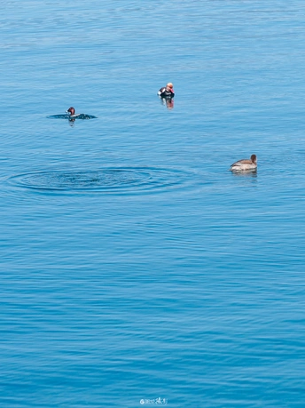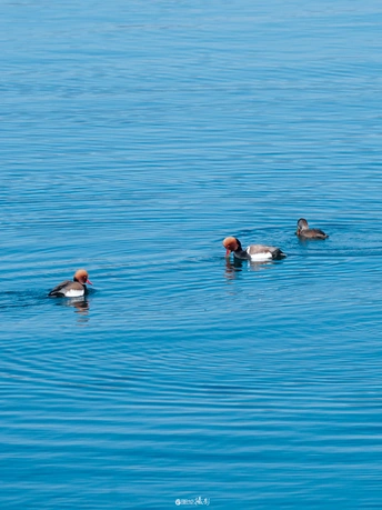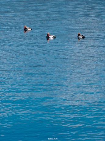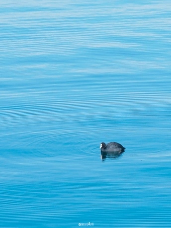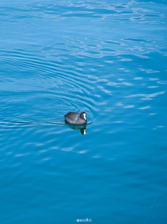 湖水湛蓝平如镜, 鸳鸯戏波影成双。 野鸭悠游寻旧梦, 涟漪轻荡乐无疆。