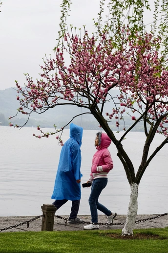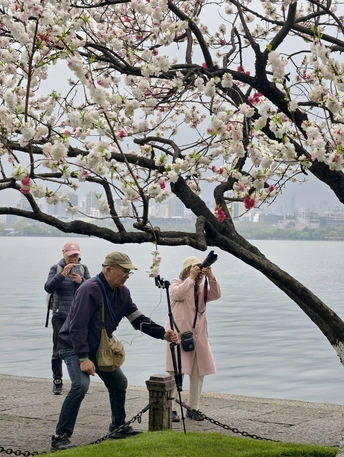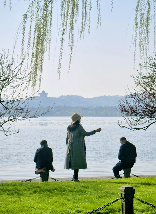 西湖山水还依旧,桃红柳绿又一年。同一片天空下,人们以自己的方式和春天相遇。