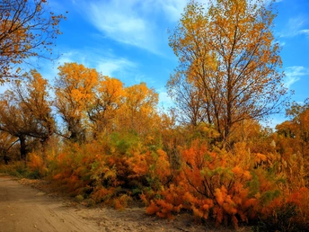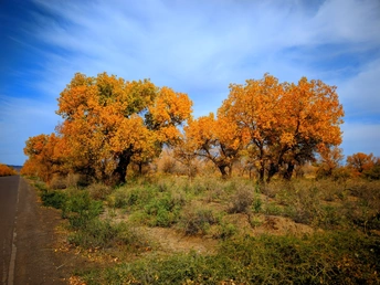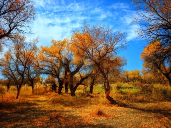 秋风簌簌黄金甲, 气势恢宏战风沙。 沧桑千年永不倒, 坚韧成林扬天下。