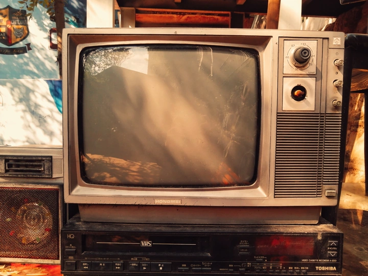 逛街的时候我注意到了这台雪花屏老电视老物件,录像机里卡着半截发霉的磁带,破旧损坏的旋钮上留着调台的痕迹。生锈的音箱,那些按不动的播放键按钮键,摸一把满手都是灰尘,中午的阳光刚好映射在老旧的电视机屏幕上,仿佛在播放着黑白屏的老电影,这是时光的痕迹