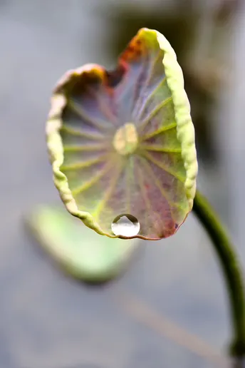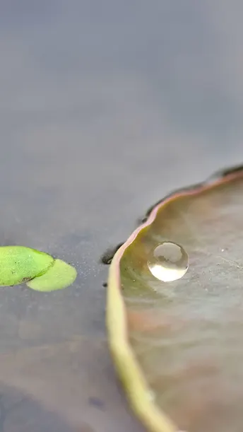 嘉定荷花研究基地的荷花已经初露水面,清晨的露珠尤其的圆润