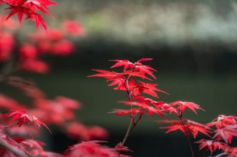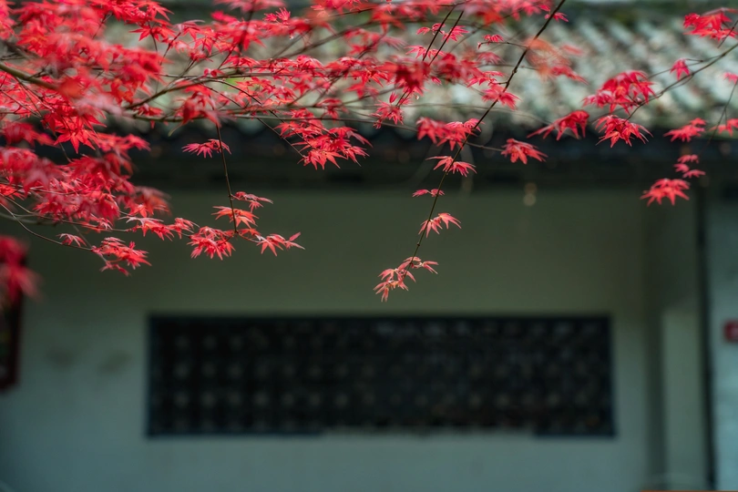 重庆天气越来越暖和,可公园里的枫叶🍁开得正红!