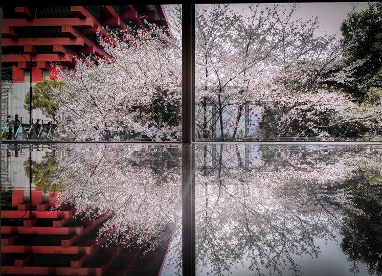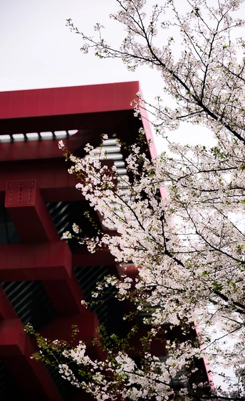 拍摄于3月28日,天气有点阴。当中华艺术宫与盛开的樱花结合,庄严遇上柔美,别有一番风情。