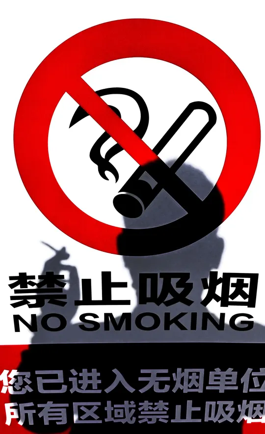 画面中“禁止吸烟”的标语鲜明醒目,传递着创建无烟环境、维护健康的理念。而阴影人物及其拿烟状态,与标语形成强烈反差,富有戏剧性。这种反差好似一种潜在的矛盾,暗示着部分人吸烟习惯与公共健康需求间的冲突。它仿佛在无声发问,规则之下,个人行为能否与健康倡导达成一致,既体现出对吸烟者遵守规则的隐性呼吁,也凸显出营造无烟环境仍需引导与规范的现状。
