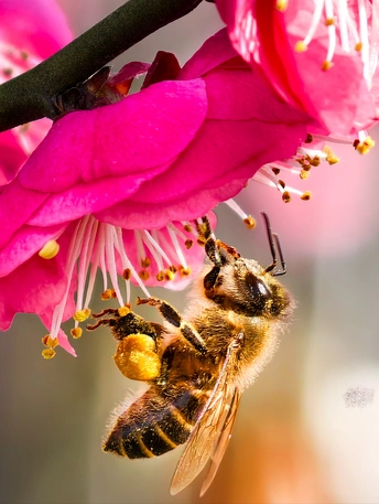 以专业微距技法定格瞬间,精准对焦蜜蜂与花蕊,构图紧凑突出主体细节。光影层次分明,柔和光线雕琢蜂身绒毛、花瓣纹理,色彩饱和度与对比度精妙平衡。包装选用此图,既展现自然生态的细腻之美,更传递摄影级视觉质感,赋予产品专业、精致的美学标签。