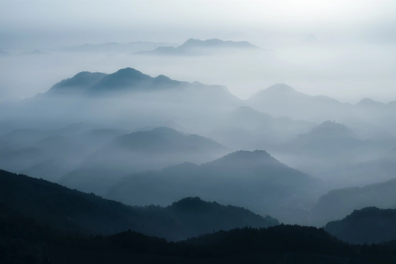 大山宁静的清晨宛若一幅水墨画