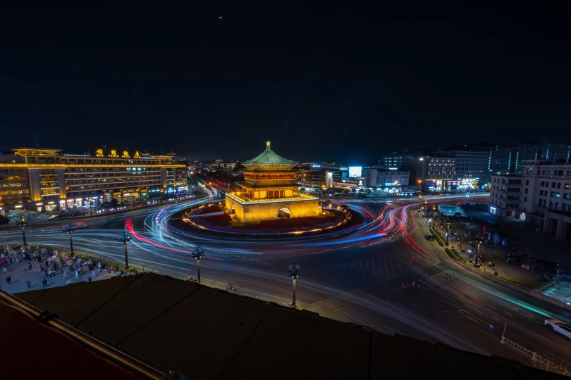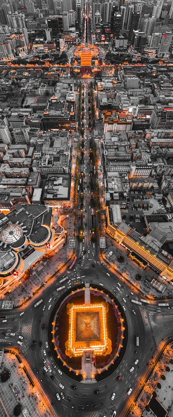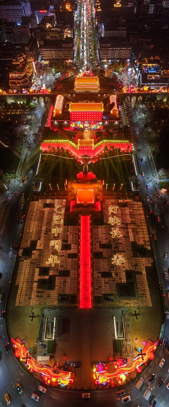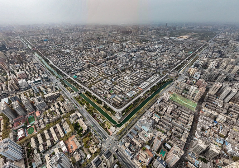 钟楼、永定门、城墙在上帝视角下非常整齐明显,不愧是长安城