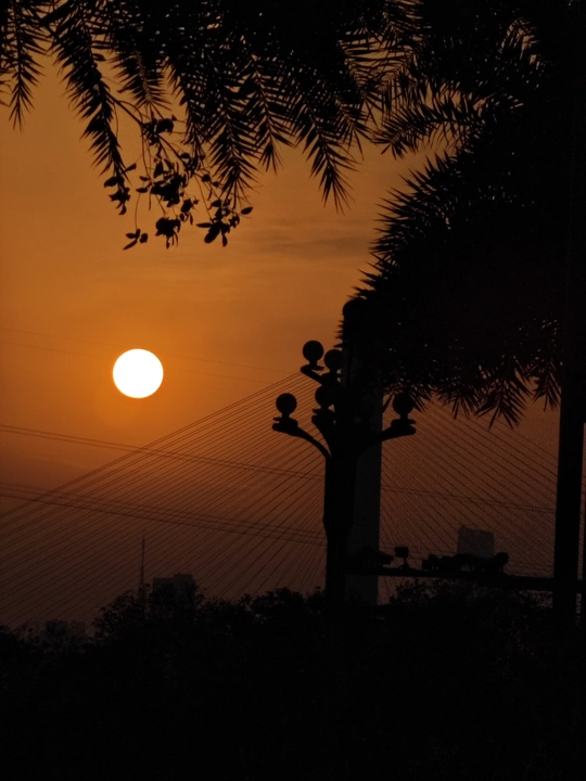 夕阳下的风景总是很好的,太阳的余晖照在高楼上,周围的建筑都成了暗影,有着明暗与色彩的对比。 第二幅照片同样拍摄于黄昏时段,天空的色泽温暖而宁静,棕榈树叶和其他树木都成了剪影,在暗色的光线下,桥和路灯都重叠在了一起,也让画面更简洁。