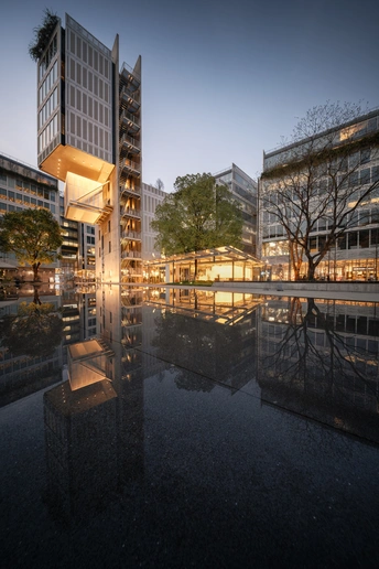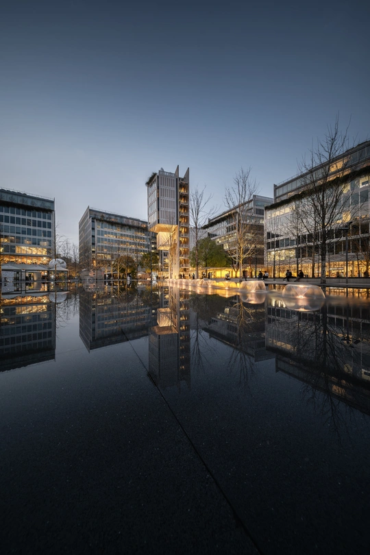 这是属于天目里的蓝调时刻——城市的喧嚣褪去,建筑与自然、艺术与生活,在静谧的深蓝中沉淀出永恒的诗意