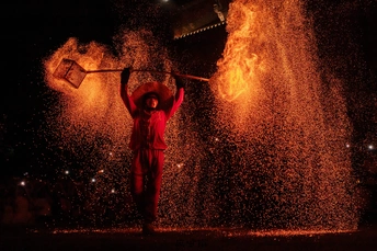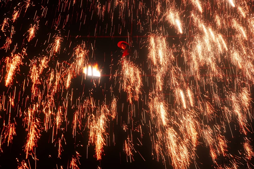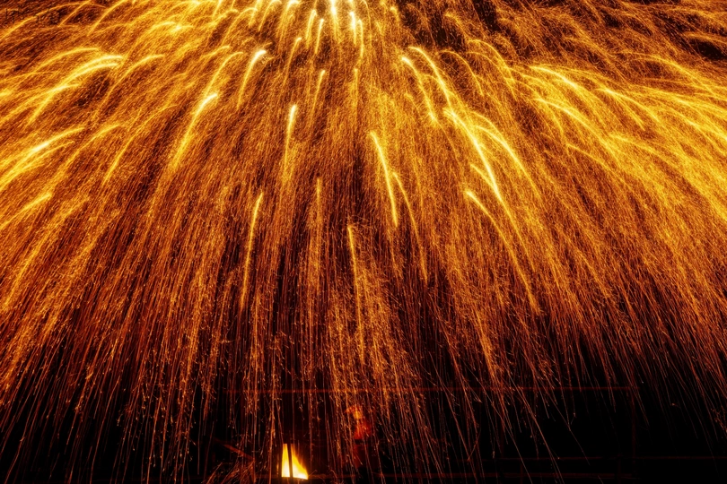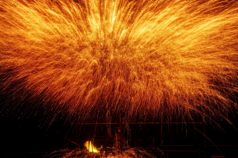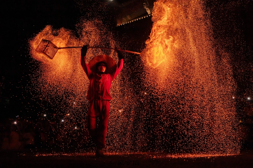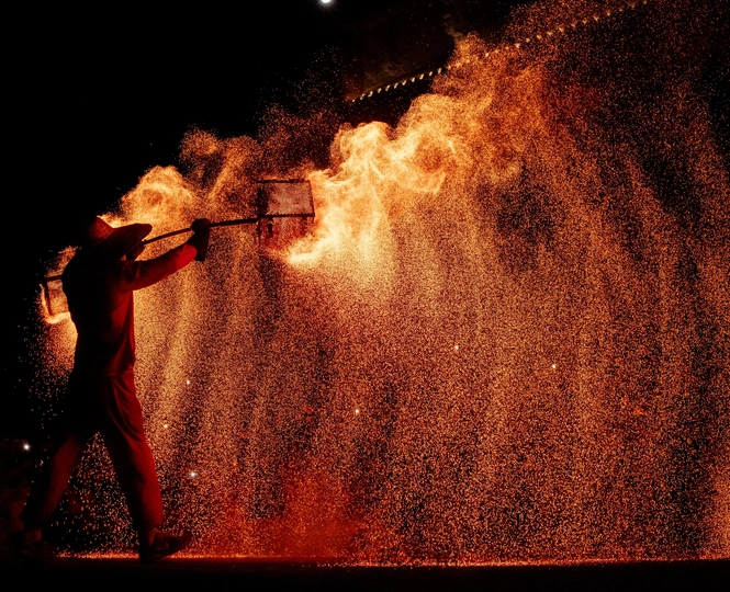 人间惊鸿宴,不过铁水泼金莲 当1600°C铁水撞上夜空一 这不是特效!是流淌千年的中国式浪漫! 一泼一打,金雨漫天 刹那的火树银花,照亮了匠人掌心的岁月茧 站在迸裂的星光下 才懂什么是“浴火而生”的震撼 原来最炽热的星辰 早已被古人藏进了滚烫的人间 拍摄时间:2024.11.15 拍摄设备:佳能6D2 适马70 200f2.0 光圈2.0 iso800