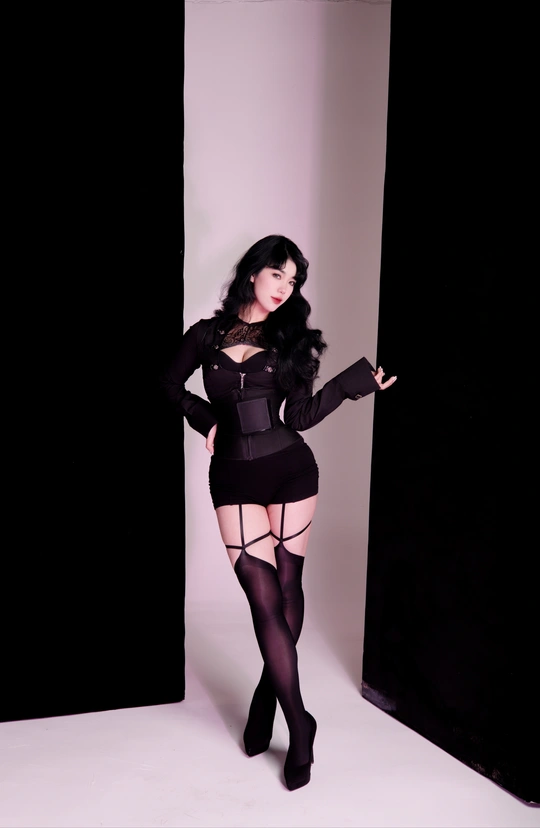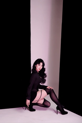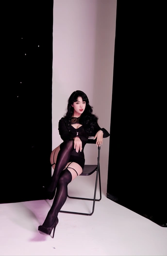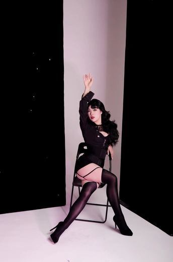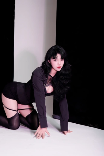 这组片子是在室内影棚里拍的,模特橙子🍊表现的很自信得体,拍摄氛围感很足。