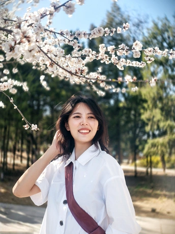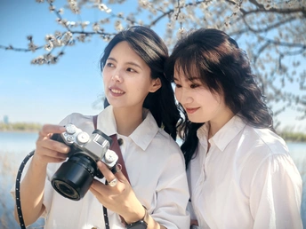 两个小姑娘很阳光,在春和景明的日子一起出来采风留影。