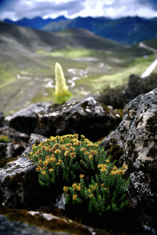 红景天可能是大众知名度最高的高原植物了。在流石滩上,为了抵御高原地区极强的光线,红景天的叶片生成了很多的花青素,这使得它们的叶子呈现出了非常鲜艳的色彩,“红景天”的名字便由此而来。