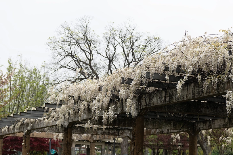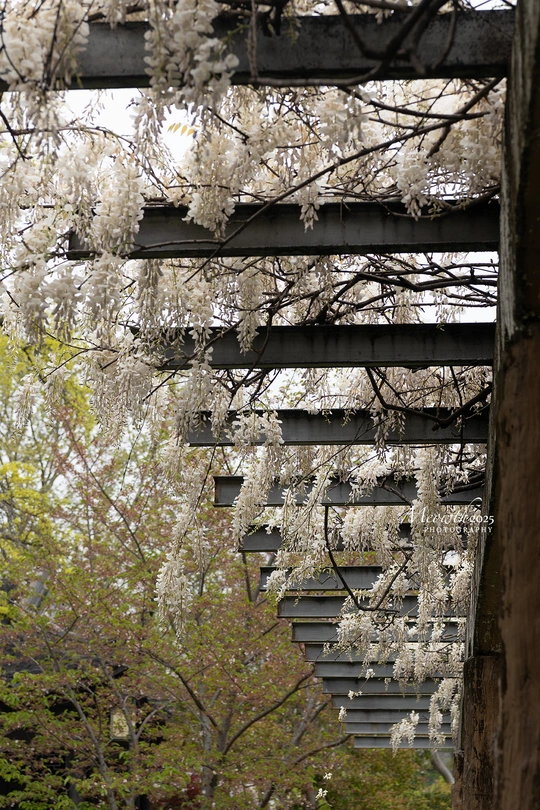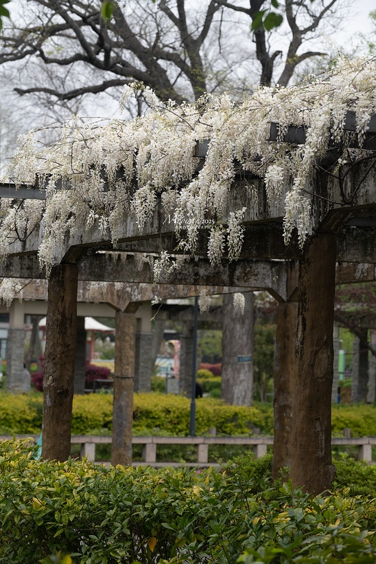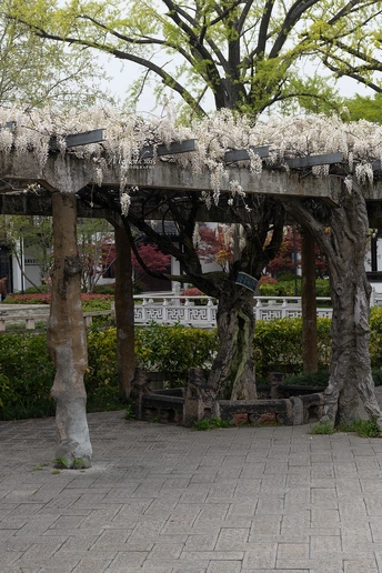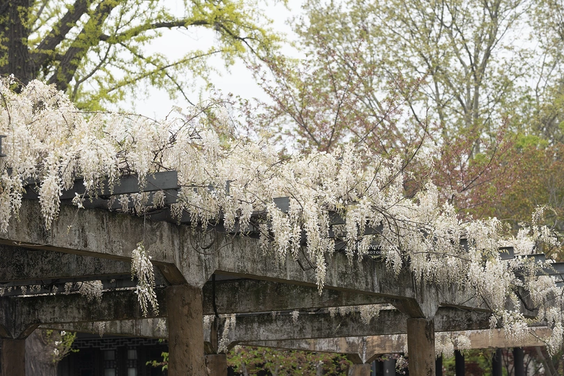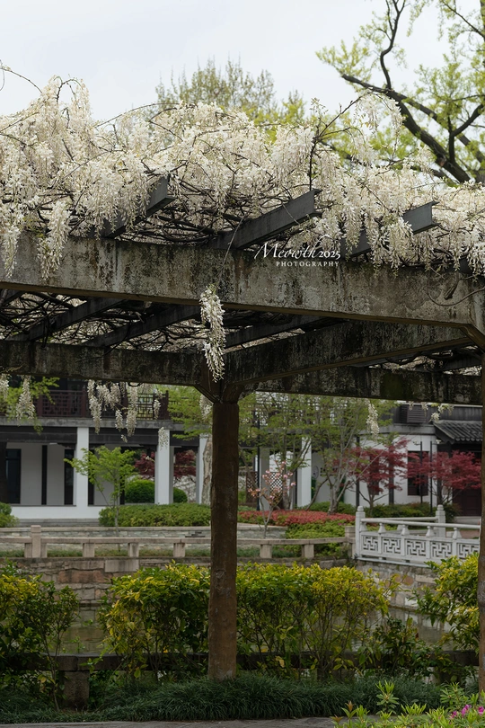 🌿清明时节,紫藤也正在花期,东园里有一棵白藤,已经200多岁了,晚樱和红枫、白藤的交相辉映,构成了一幅五彩斑斓的画卷。 📍东园