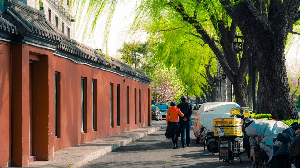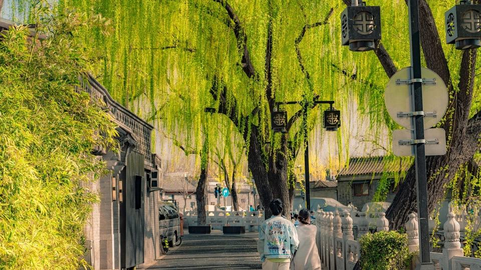 这组图片展现了北京春日里胡同与街道的独特魅力。从红墙绿树的宁静小巷,到充满生活气息的胡同日常,再到树木成荫的绿色隧道,每一处都充满了生机与活力。画面中既有传统建筑的古朴典雅,也有现代城市的秩序井然。垂柳依依,花香四溢,人们在街道上漫步、交谈,享受着春日的美好时光。这些图片不仅记录了北京的城市风貌,更传递出一种宁静、和谐的生活态度。