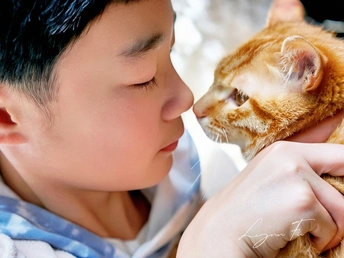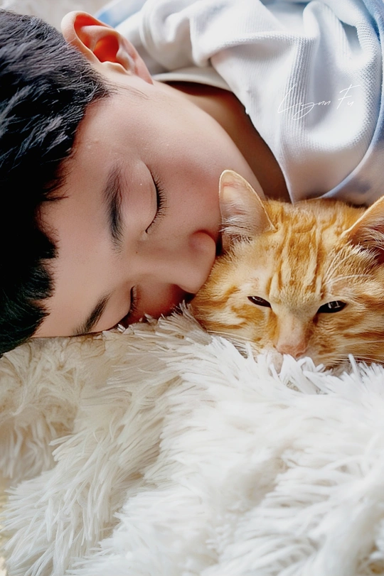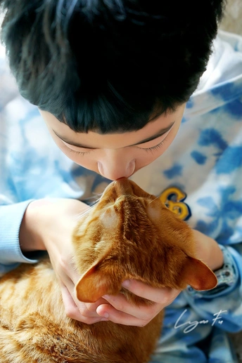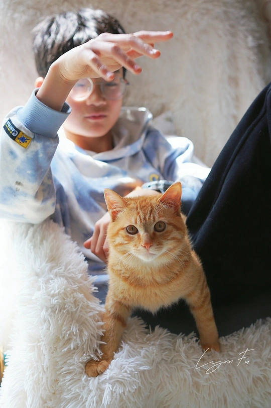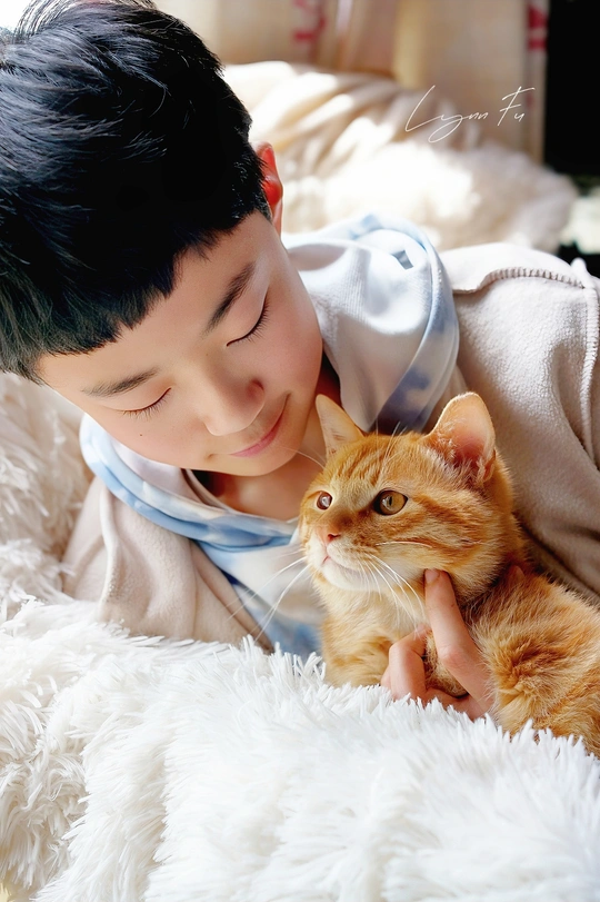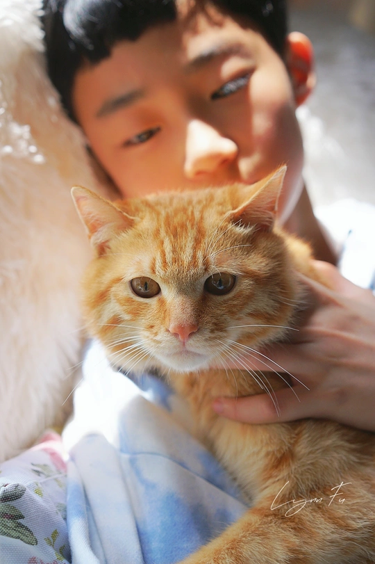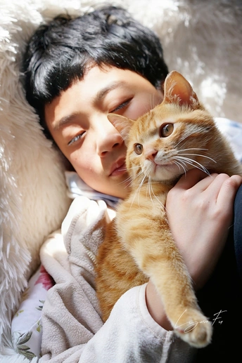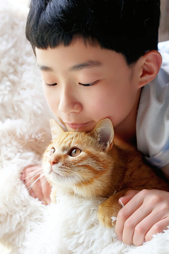 暖春午后,阳光似碎金洒落。孩子轻闭双眼,脸庞柔和,怀抱着毛茸茸的橘猫。橘猫睁着明亮大眼,乖巧依偎。阳光勾勒出他们的轮廓,这一刻,岁月悠然。人与猫的亲昵相伴,如一首无声的歌,驱散心底阴霾,治愈着日常的疲惫与纷扰。